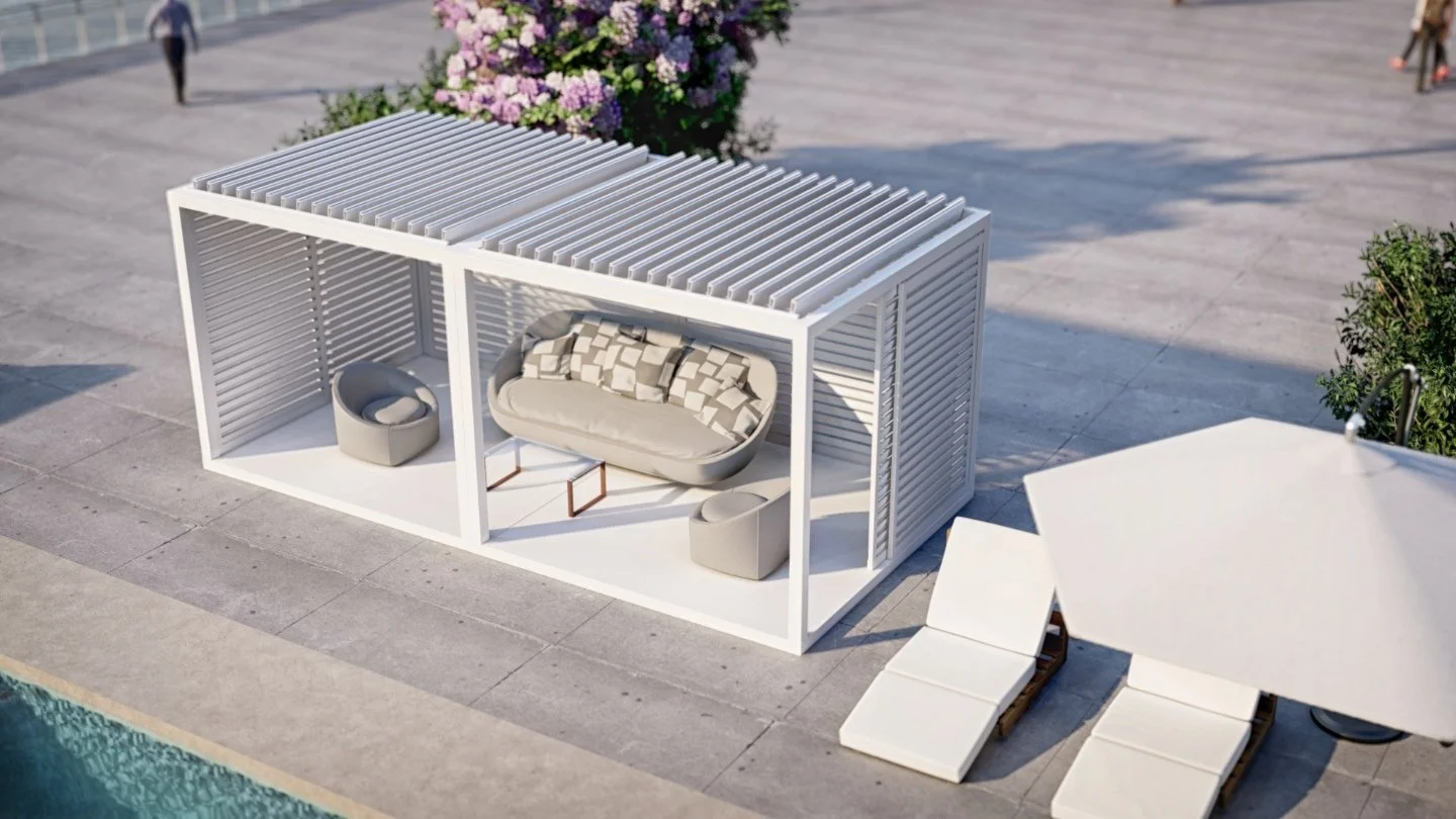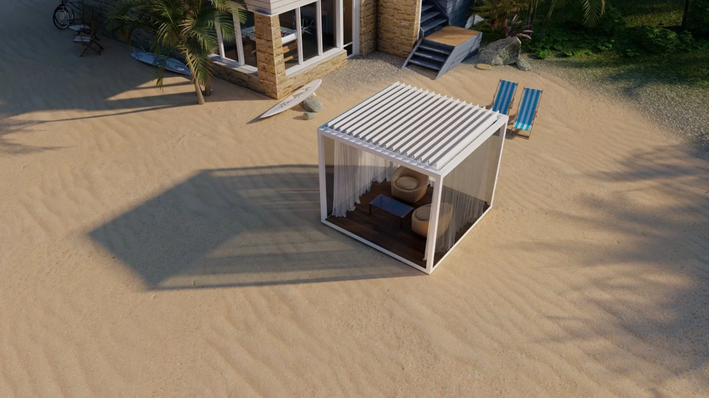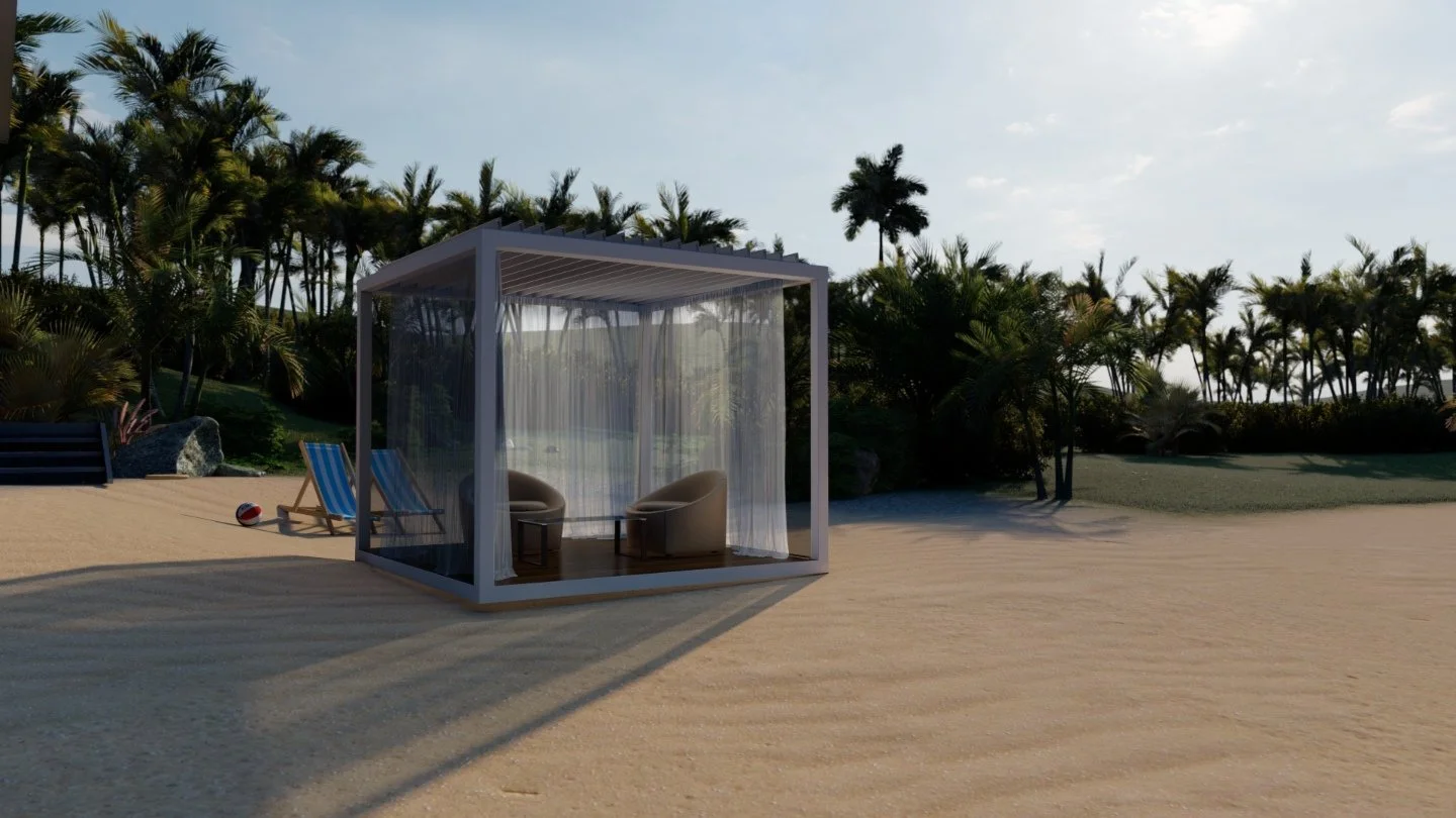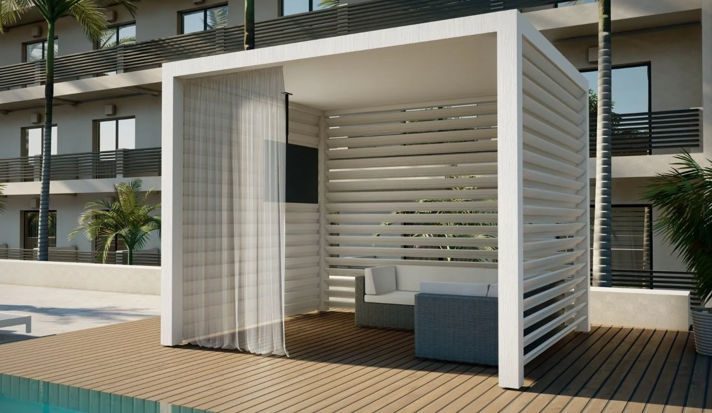 Your outdoor living experience is about to get even better! Revel in the luxury, privacy, and shade of an Azenco K-Bana while spending time outdoors with your friends and family. This stand-alone cabana unit can be installed almost anywhere, including in small outdoor spaces. If you have a larger area, have multiple units installed side by side for a clean and contemporary resort-like feel. Conveniently control the sun and the shade with manual louvers, or opt for an insulated roof to keep cool. The K-Bana modular design allows mixing and matching features, including fixed and sliding walls. An integrated floor frame provides the opportunity for personalized flooring that meets your style preferences.