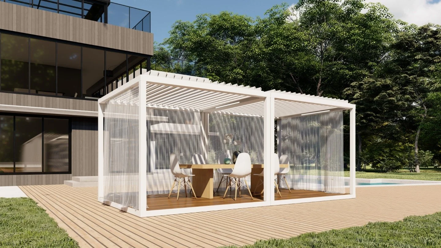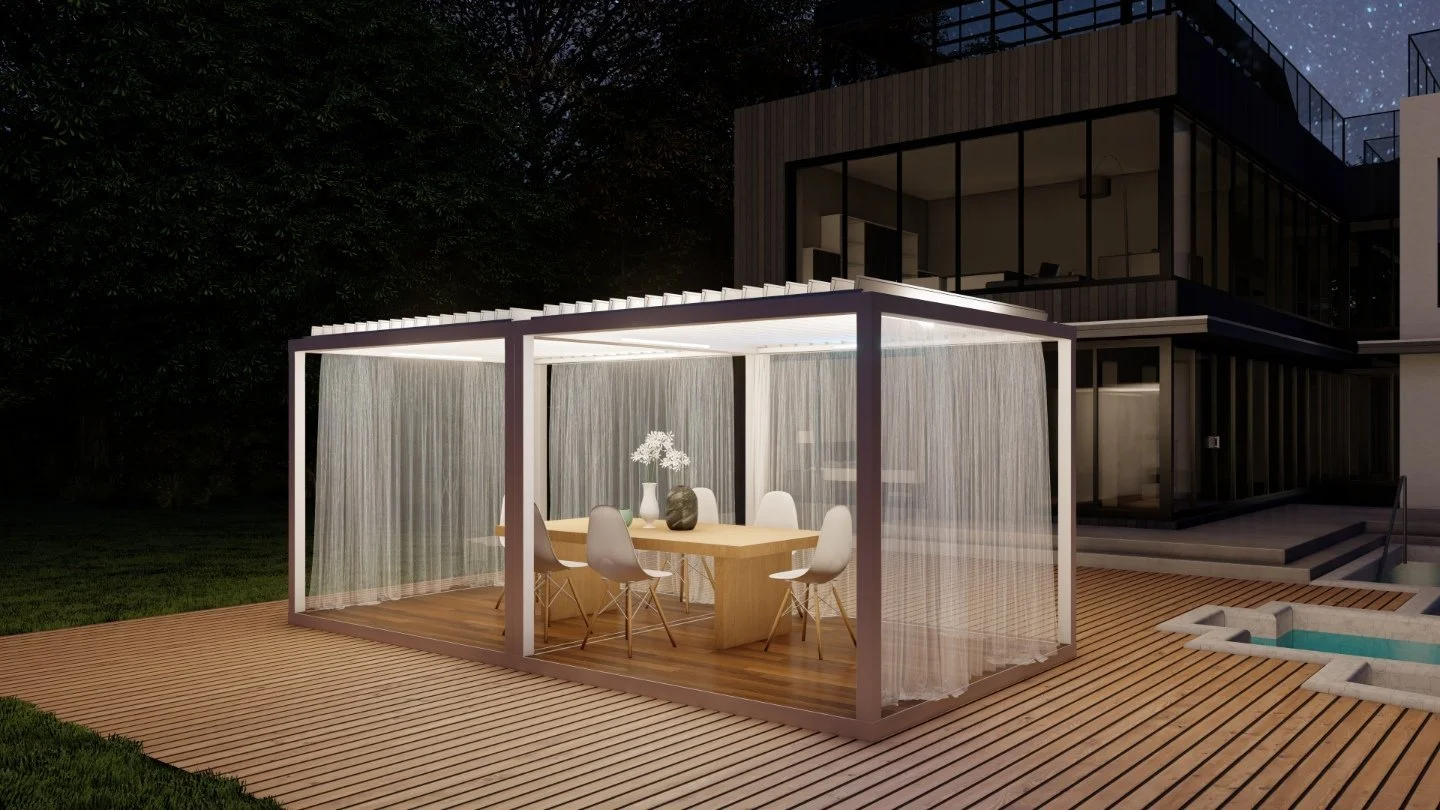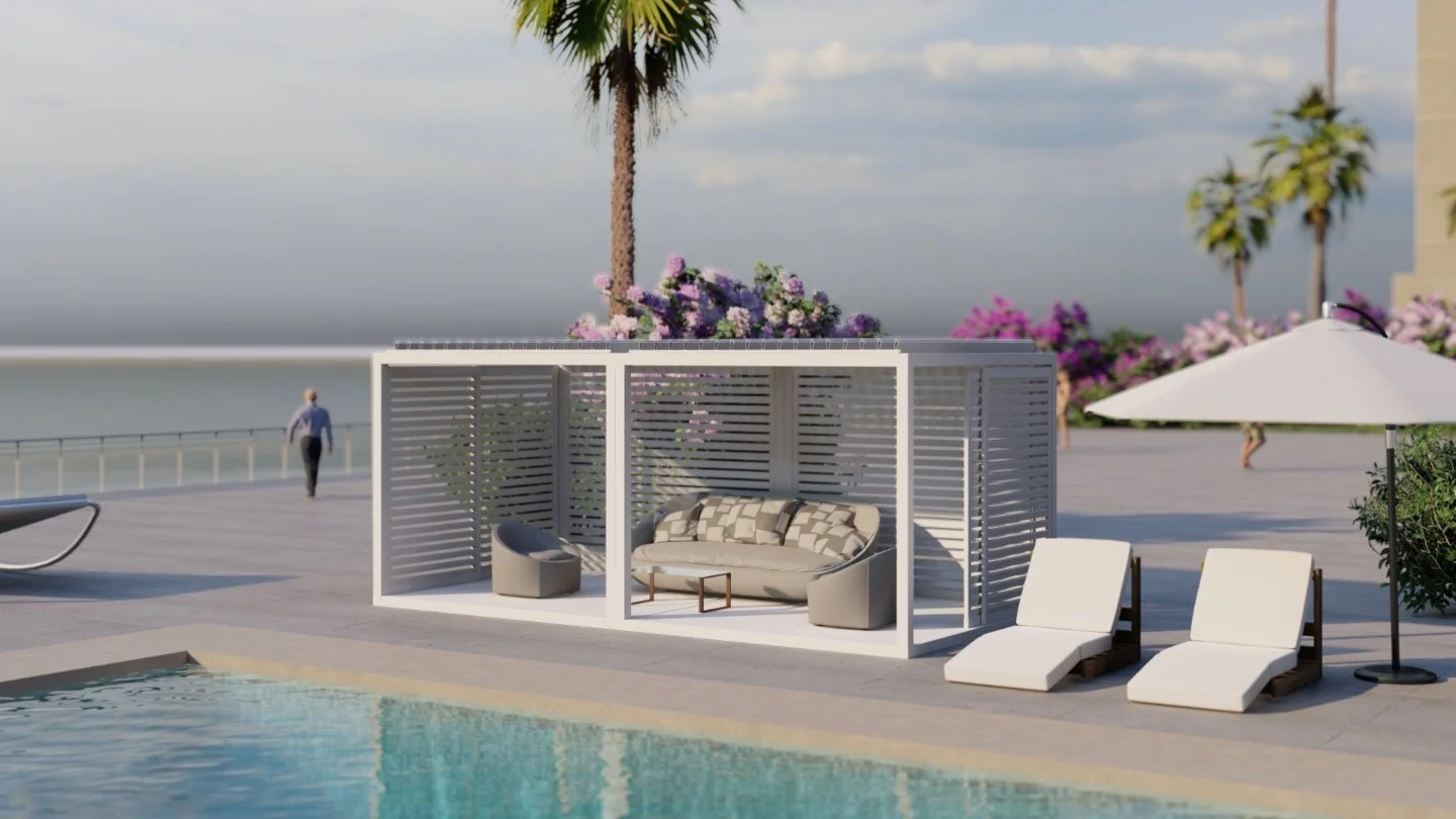 Your outdoor living experience is about to get even better! Revel in the luxury, privacy, and shade of an Azenco K-Bana while spending time outdoors with your friends and family. This stand-alone cabana unit can be installed almost anywhere, including in small outdoor spaces. If you have a larger area, have multiple units installed side by side for a clean and contemporary resort-like feel. Conveniently control the sun and the shade with manual louvers, or opt for an insulated roof to keep cool. The K-Bana modular design allows mixing and matching features, including fixed and sliding walls. An integrated floor frame provides the opportunity for personalized flooring that meets your style preferences.