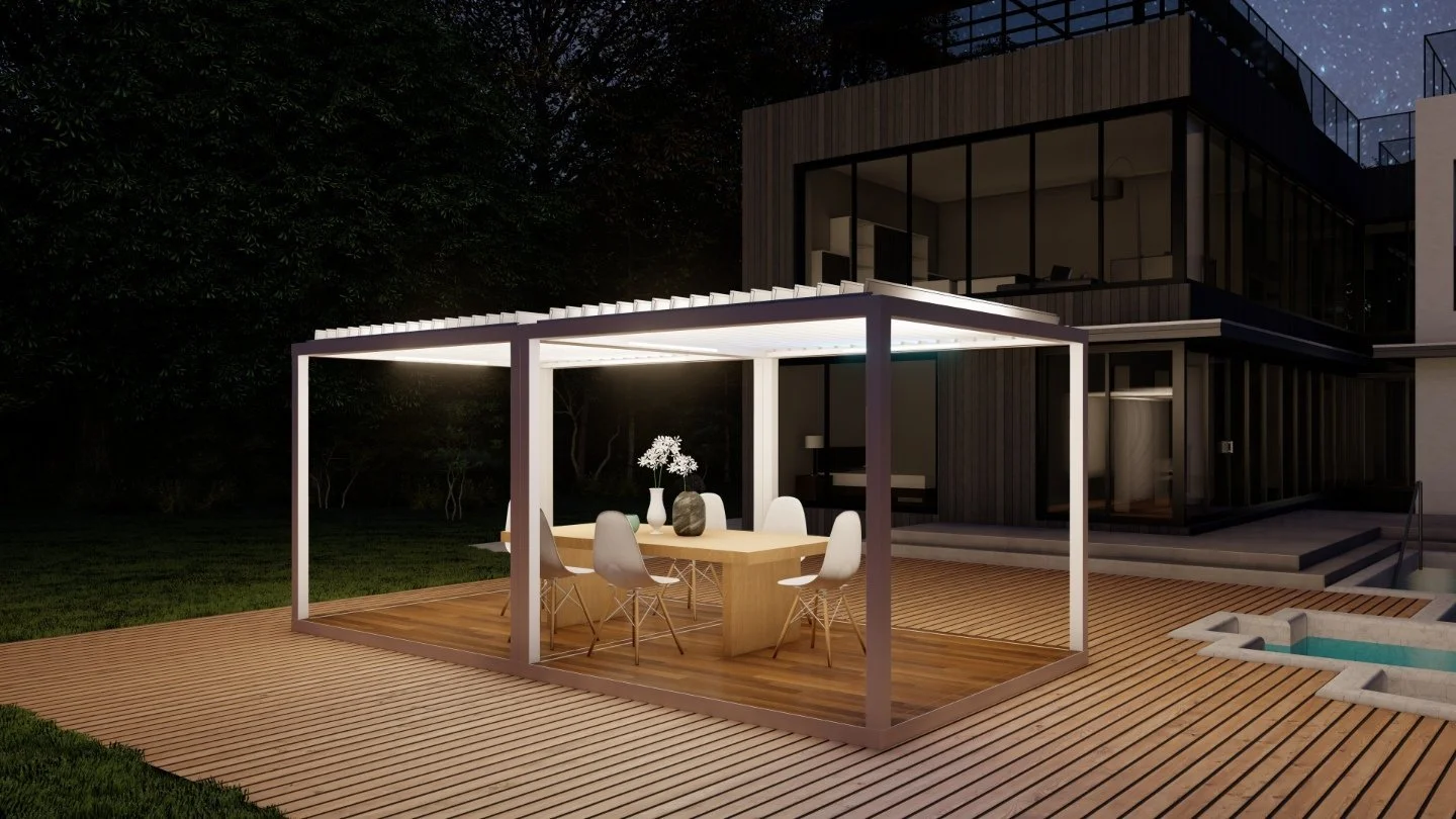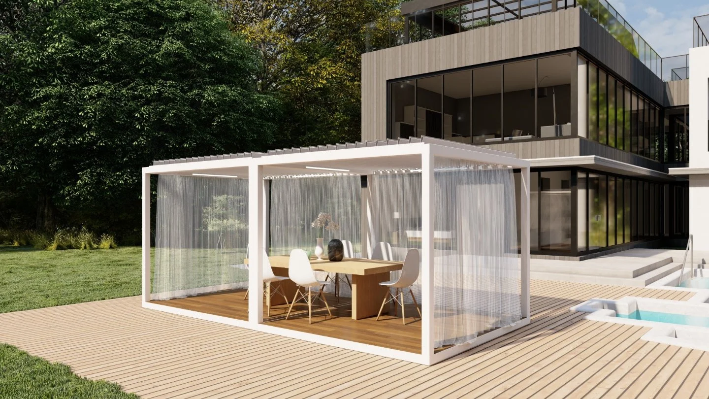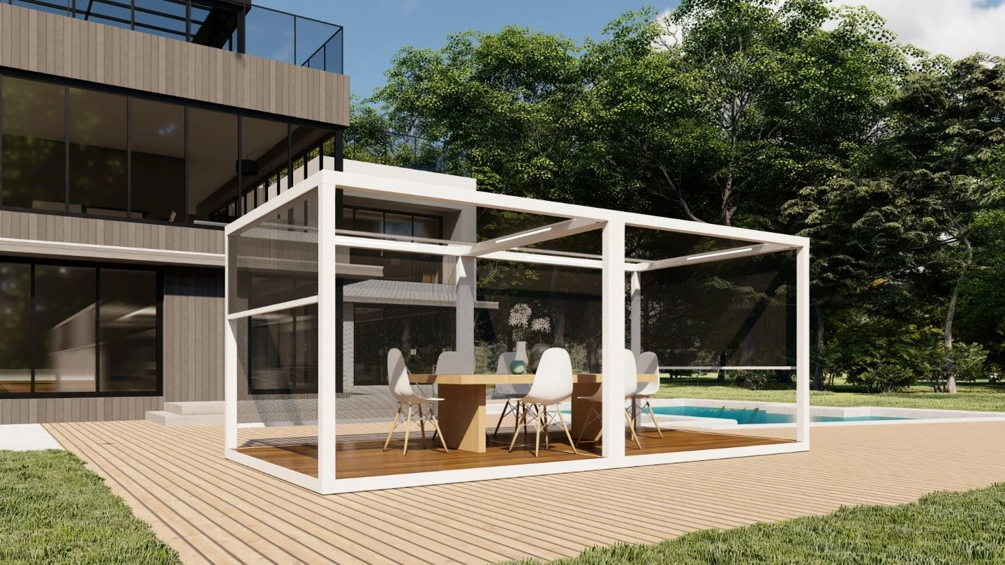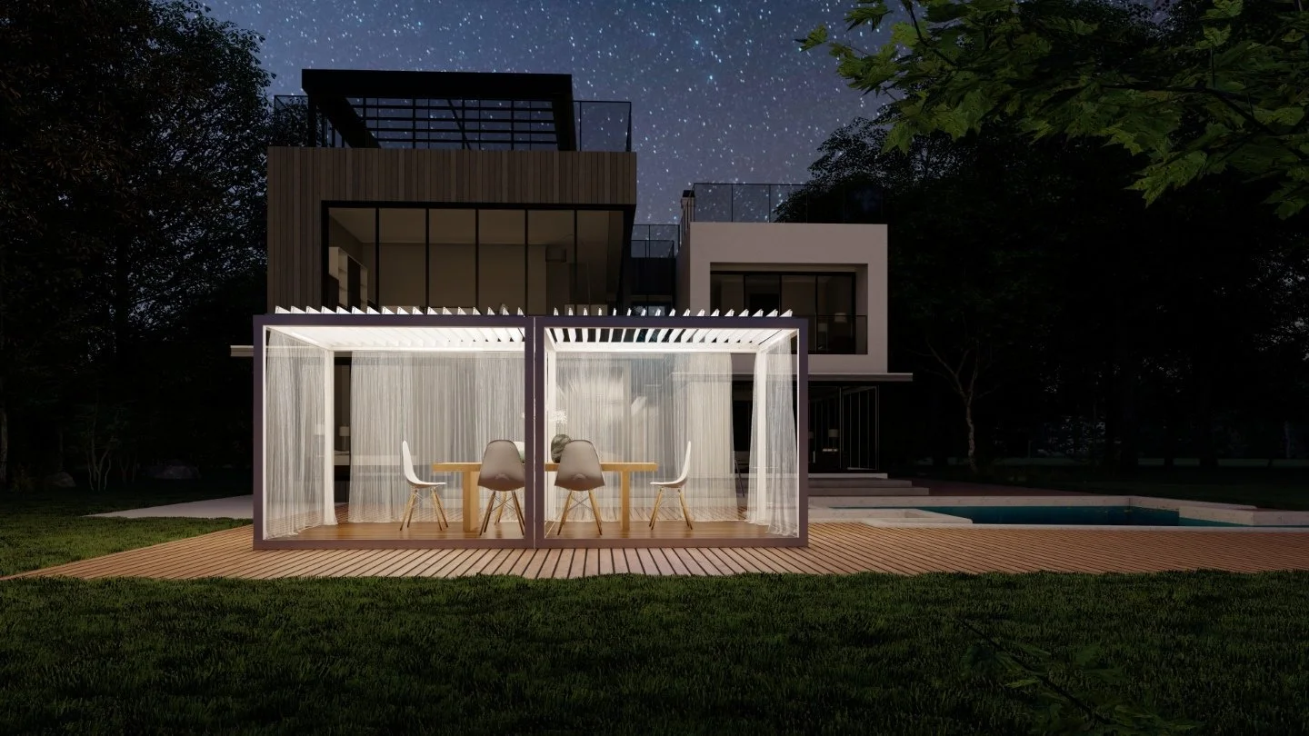 Your outdoor living experience is about to get even better! Revel in the luxury, privacy, and shade of an Azenco K-Bana while spending time outdoors with your friends and family. This stand-alone cabana unit can be installed almost anywhere, including in small outdoor spaces. If you have a larger area, have multiple units installed side by side for a clean and contemporary resort-like feel. Conveniently control the sun and the shade with manual louvers, or opt for an insulated roof to keep cool. The K-Bana modular design allows mixing and matching features, including fixed and sliding walls. An integrated floor frame provides the opportunity for personalized flooring that meets your style preferences.