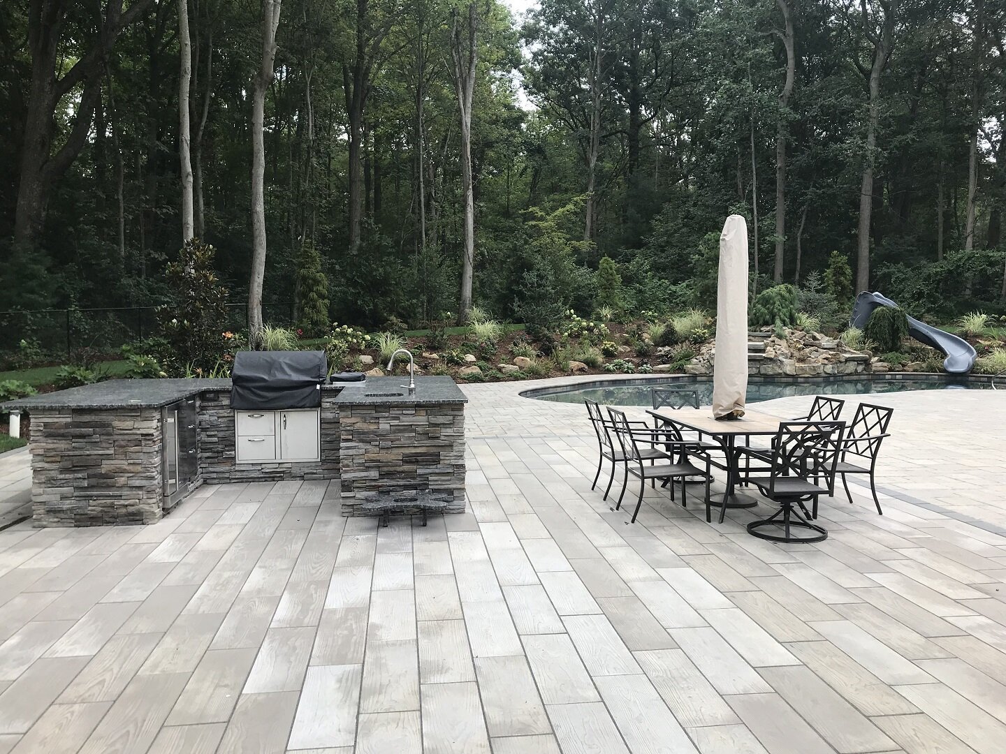 Pool patio with outdoor kitchen Oyster Bay, NY