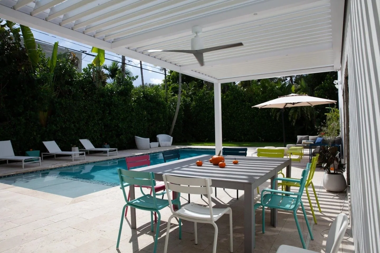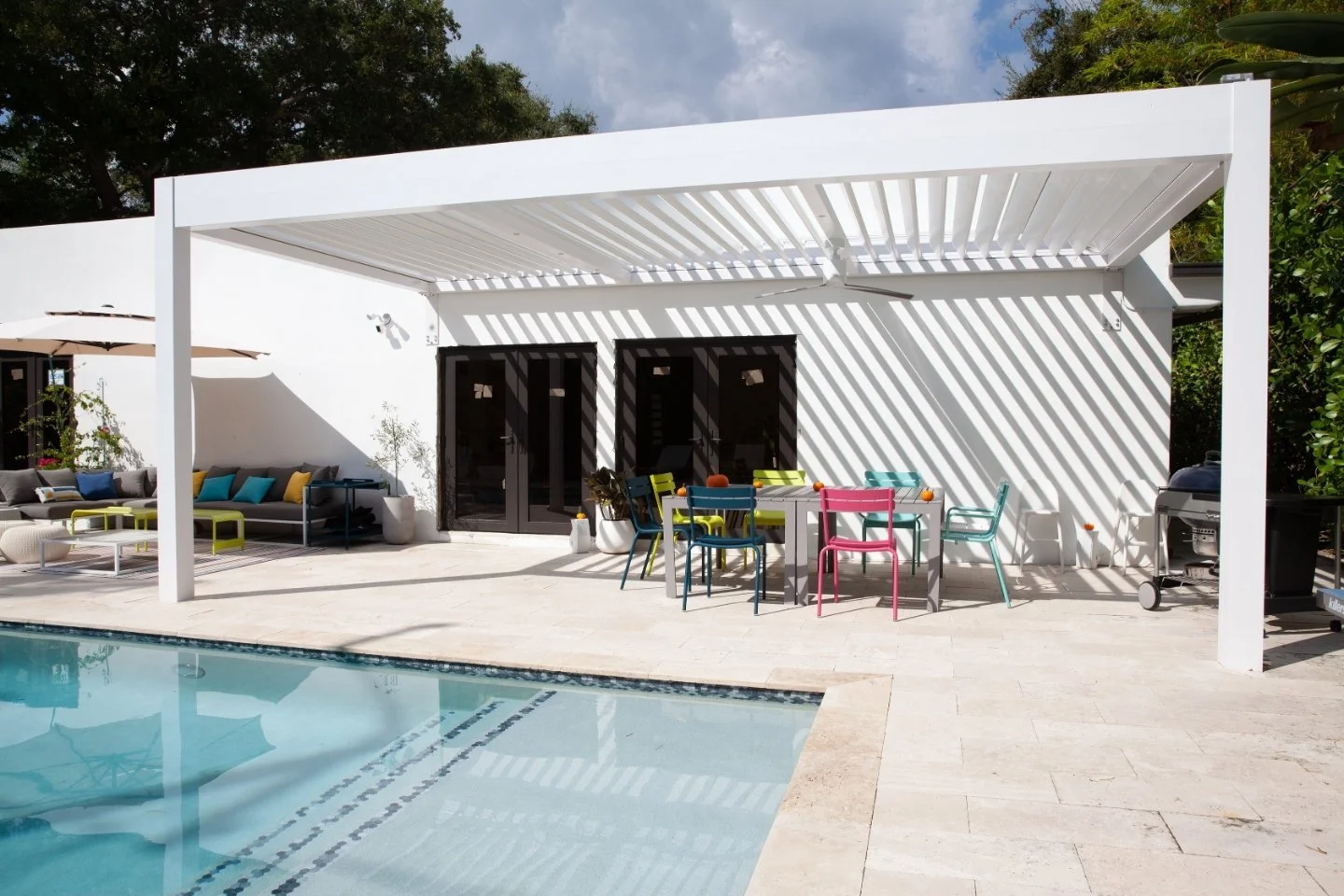 Our louvered pergolas come with a variety of options and accessories that make it possible to spend more time outdoors, whether it’s day or night.