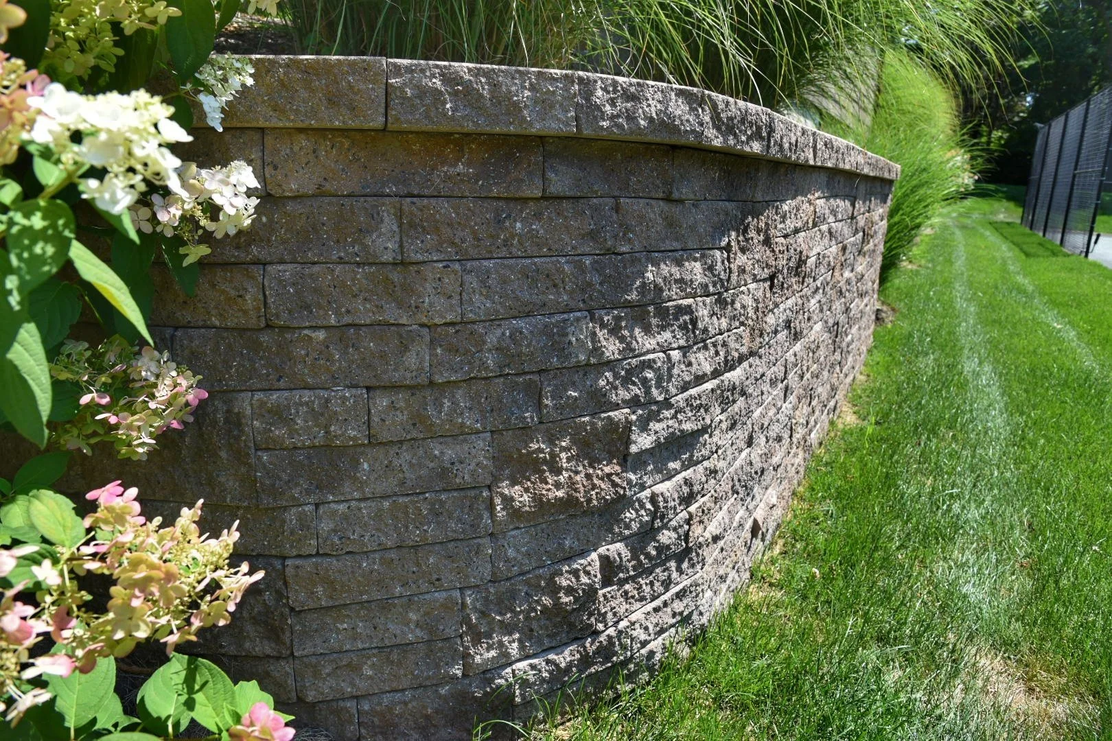 This impressive home’s large backyard presented a mostly blank slate in need of completion. We upgraded the expansive outdoor pool area with an attractive patio and an inviting cabana ready for hosting. A warm brown palette of Techo-Bloc Aberdeen slabs tastefully integrates the patio to the home’s siding, with differing tones applied around the pool, cabana supports, and other areas to create a visually pleasing artistic contrast. A stepping stone path in Cumberland brown guides visitors to a large, sturdy cabana with a lower storage area built into the existing grade. The cabana’s earthy-toned supports and roof trim, along with the natural stone veneer bases, create a cohesive effect with the beautiful surrounding natural landscape. The cabana is home to an outdoor living room area, a U-shaped stone-veneer bar with natural stone countertops, and an outdoor kitchen with a built-in grill. Plantings added throughout the property complement the surrounding landscape and complete what is now an inviting, enjoyable space.