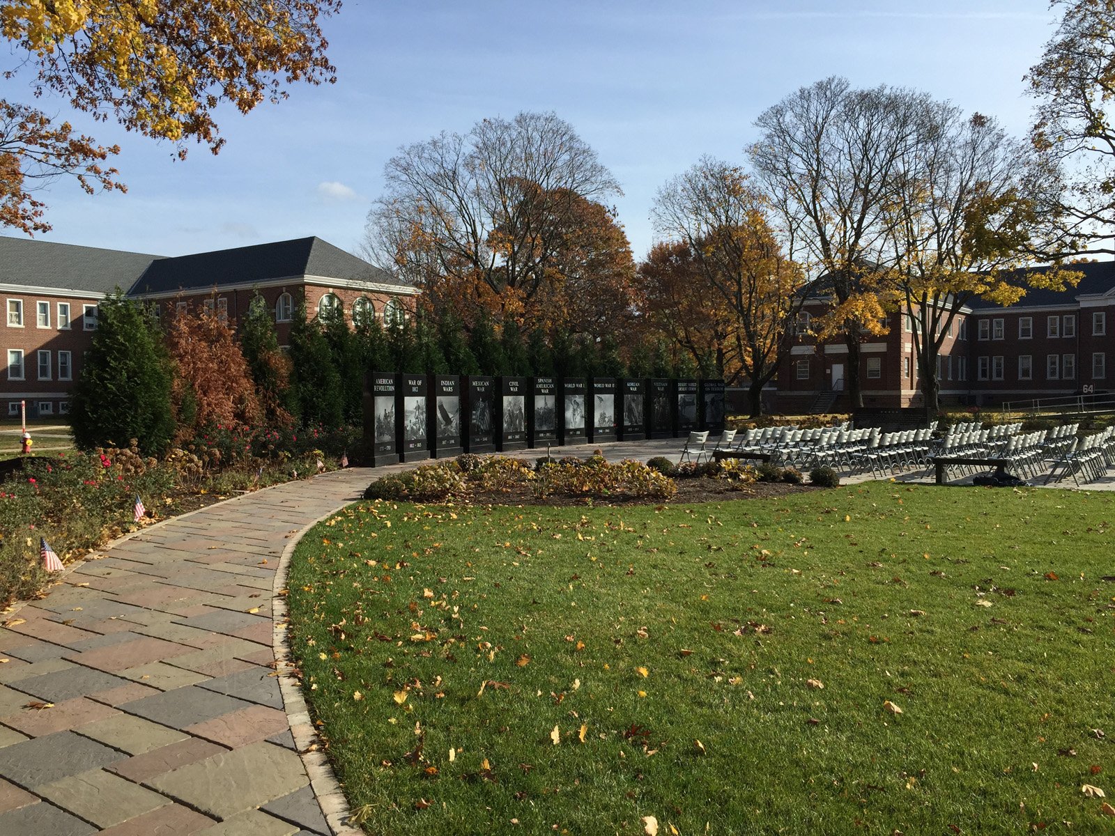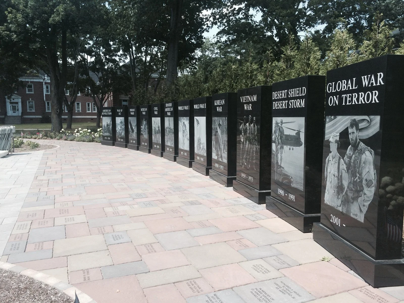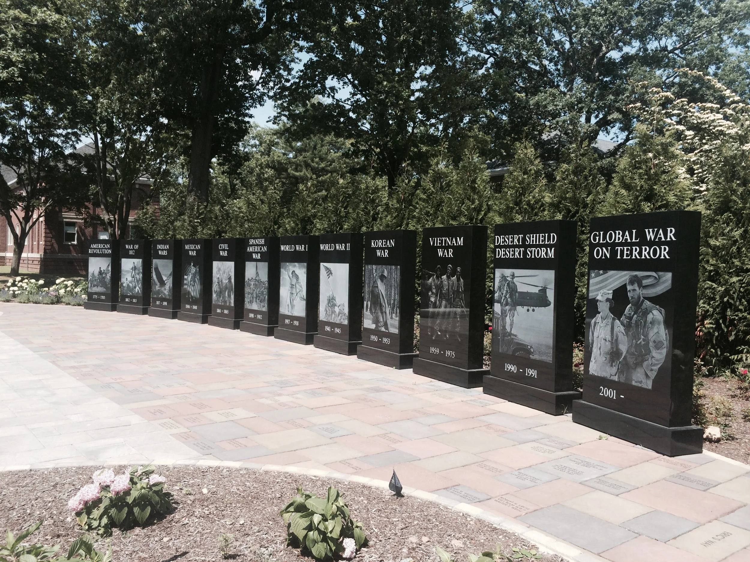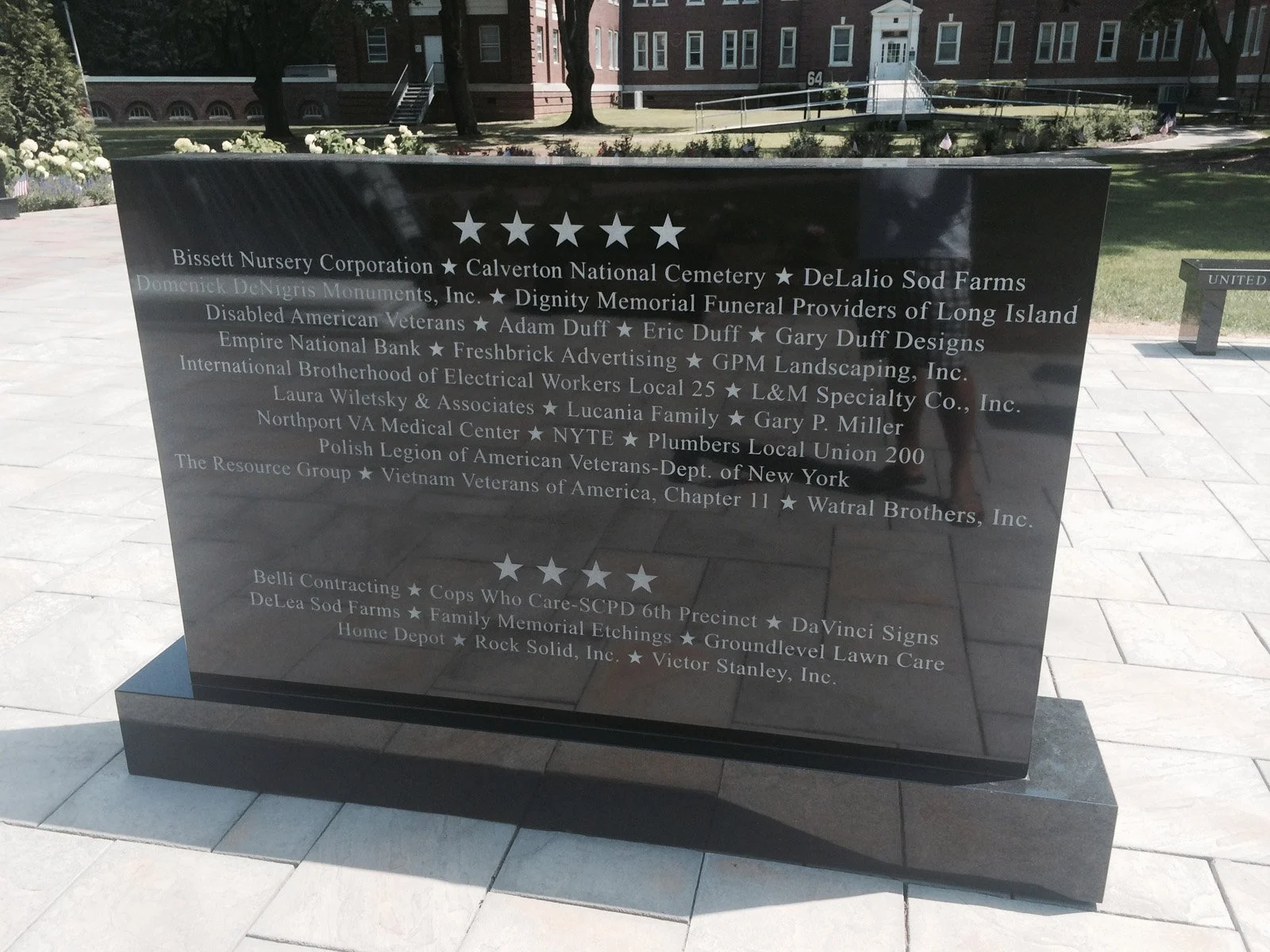 A truly commemorative space provides the opportunity for quiet contemplation, as well as education and understanding. This is what we hoped to achieve when designing the Wall of Wars alongside the VA Memorial Garden at the Northport VA Hospital. Visitors can sit peacefully, surrounded by the serene grounds of the area, recognizing the wars of the past. They can also stroll along the stone walkway to pay tribute to the loving memorials built into the patio stones.