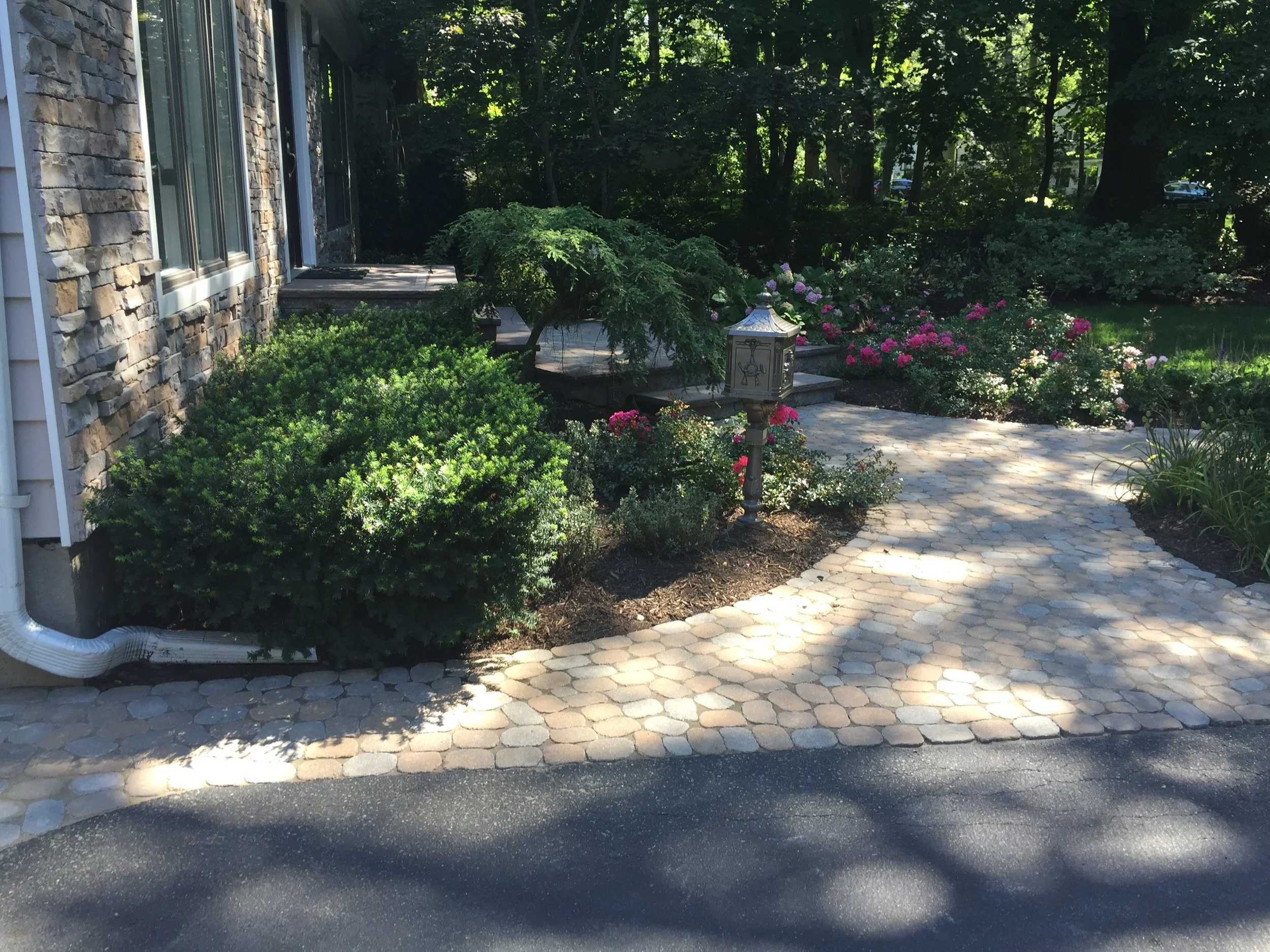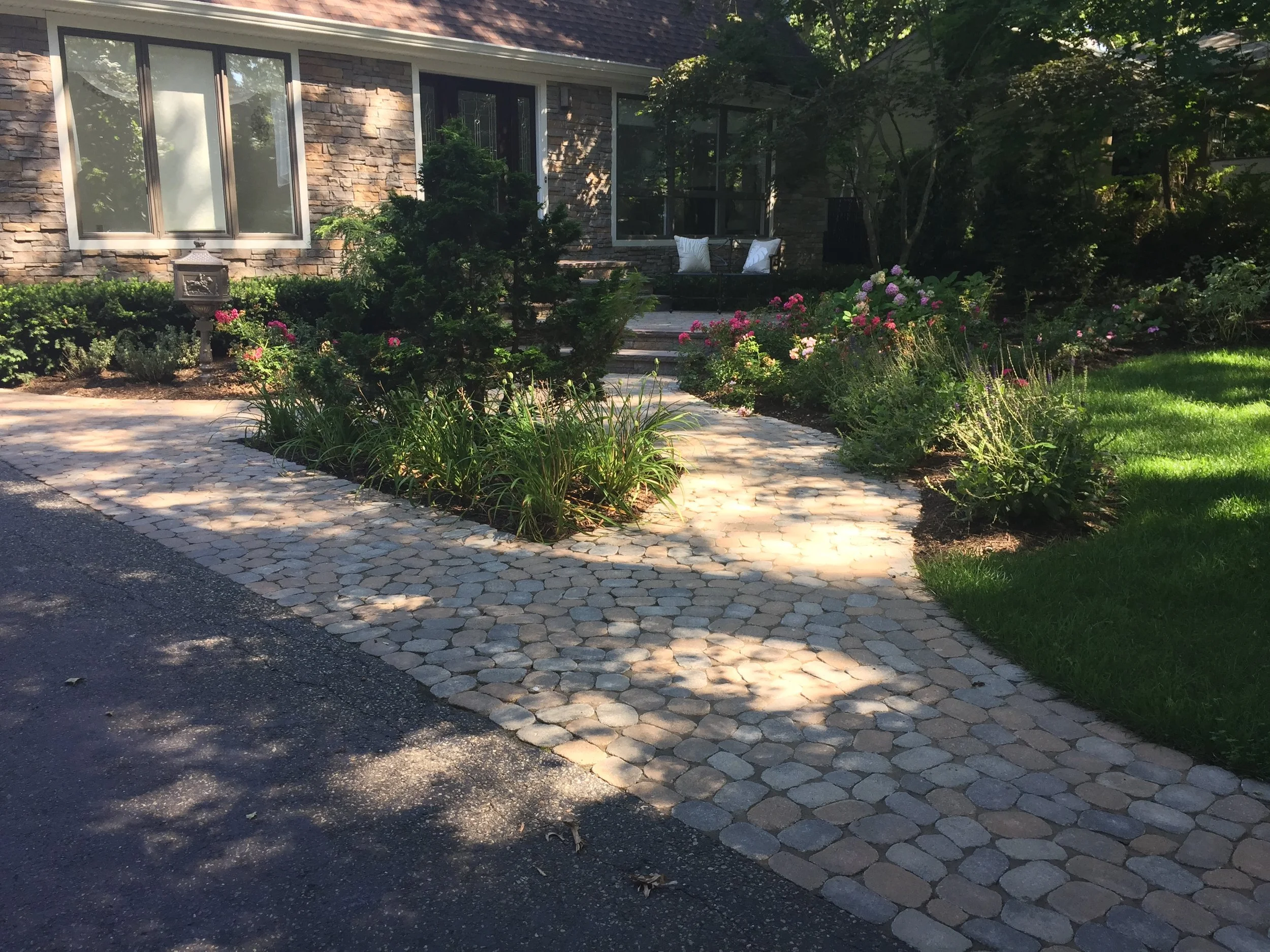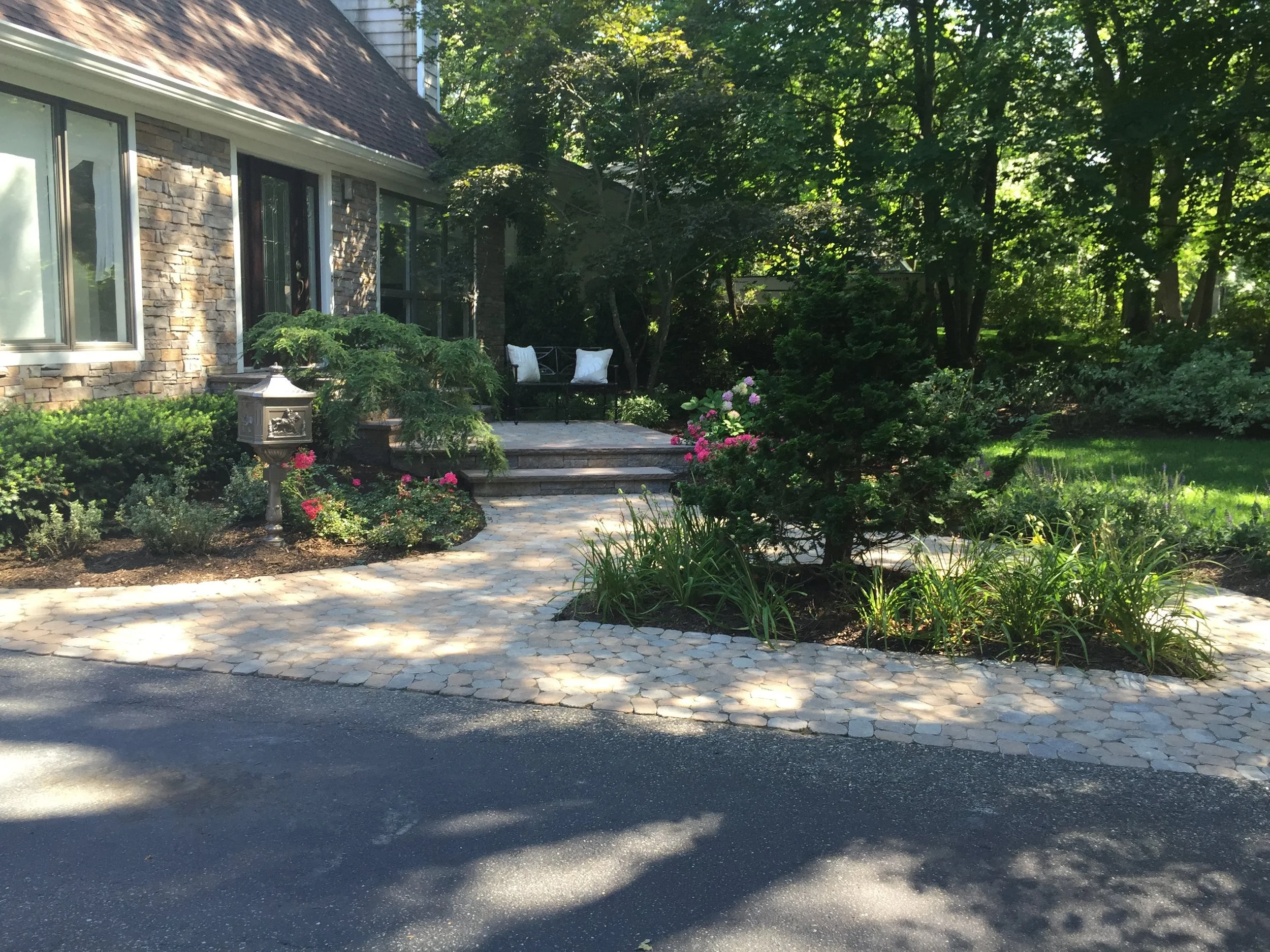 Gary Duff Designs was called on to this Long Island home to maximize a small space. Building on the existing features, including a pool and patio, the team added a new outdoor kitchen to increase the functionality and livability. In order to increase privacy, a slat wall was built from colored PVC fence material. This installation provides a new sense of seclusion during winter months, when thinning plants can’t provide the same level of protection. An interesting Techo Bloc Antika apron detail was also used to connect the driveway with the front walkway, welcoming visitors all the way from the street to the first step inside.