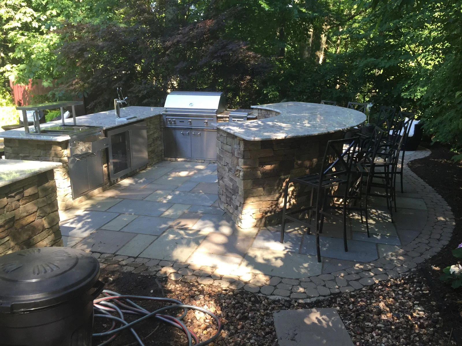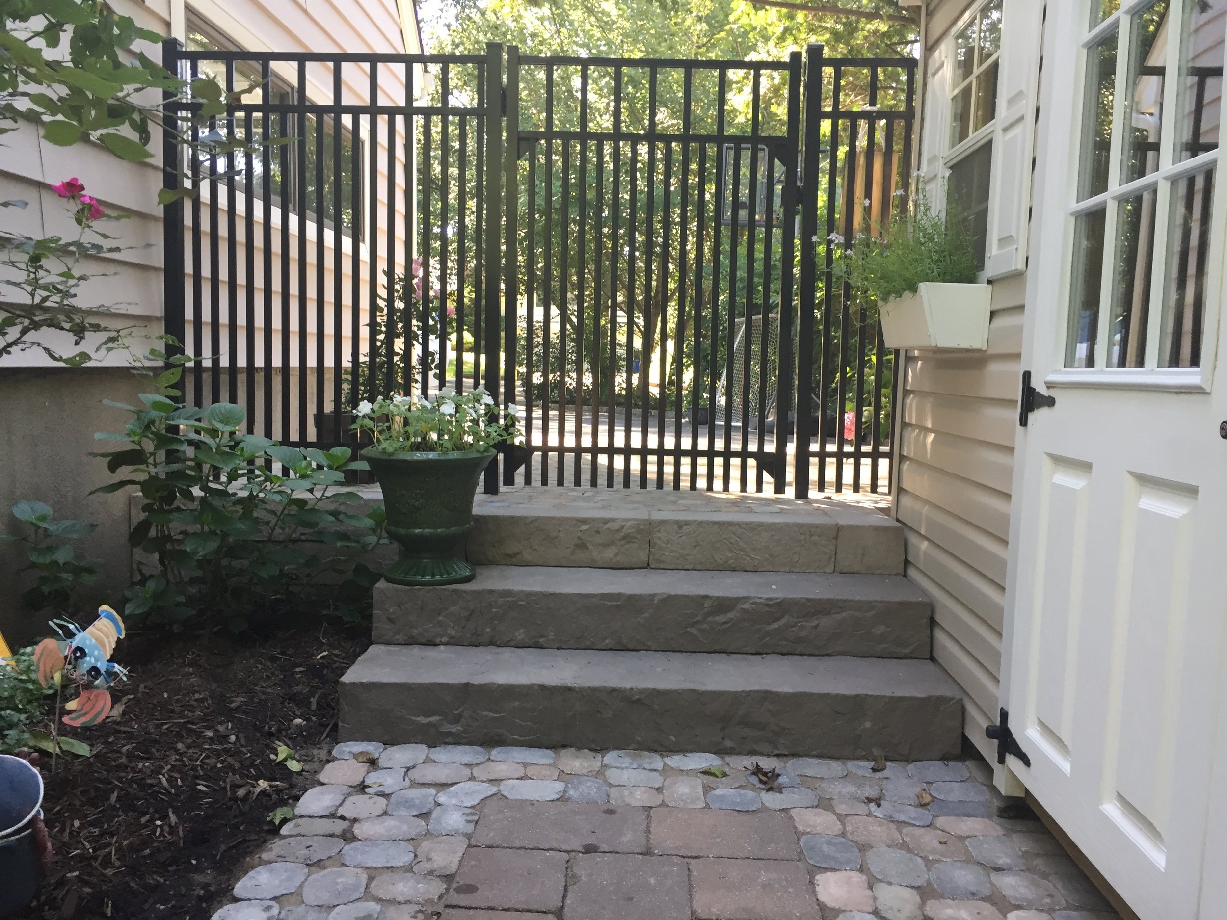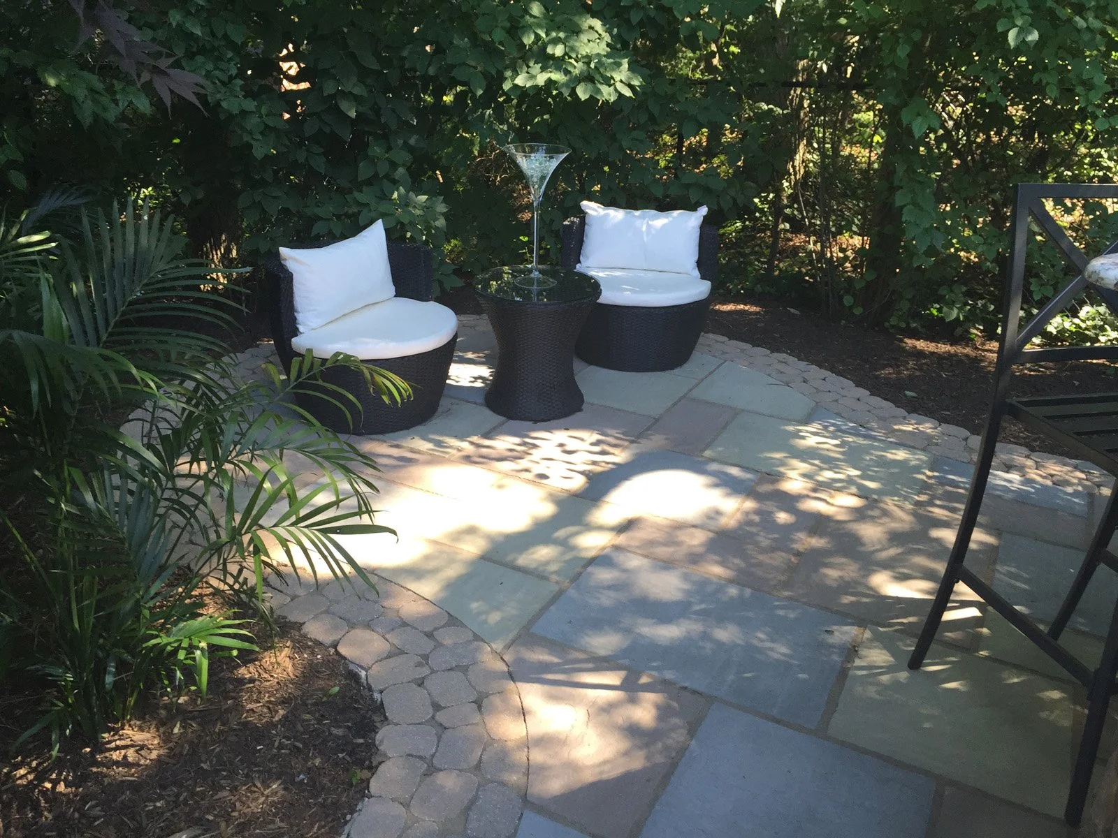 Gary Duff Designs was called on to this Long Island home to maximize a small space. Building on the existing features, including a pool and patio, the team added a new outdoor kitchen to increase the functionality and livability. In order to increase privacy, a slat wall was built from colored PVC fence material. This installation provides a new sense of seclusion during winter months, when thinning plants can’t provide the same level of protection. An interesting Techo Bloc Antika apron detail was also used to connect the driveway with the front walkway, welcoming visitors all the way from the street to the first step inside.