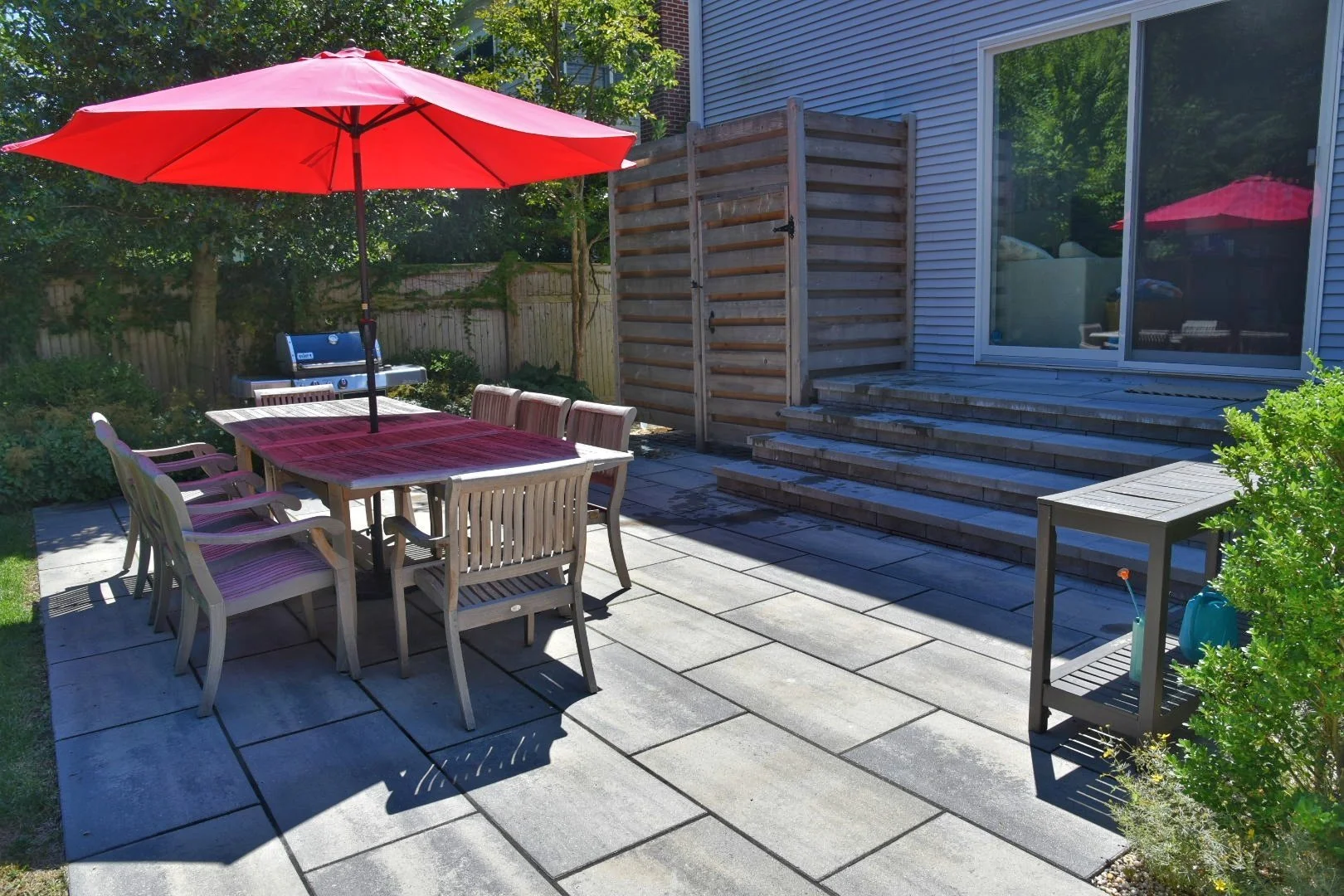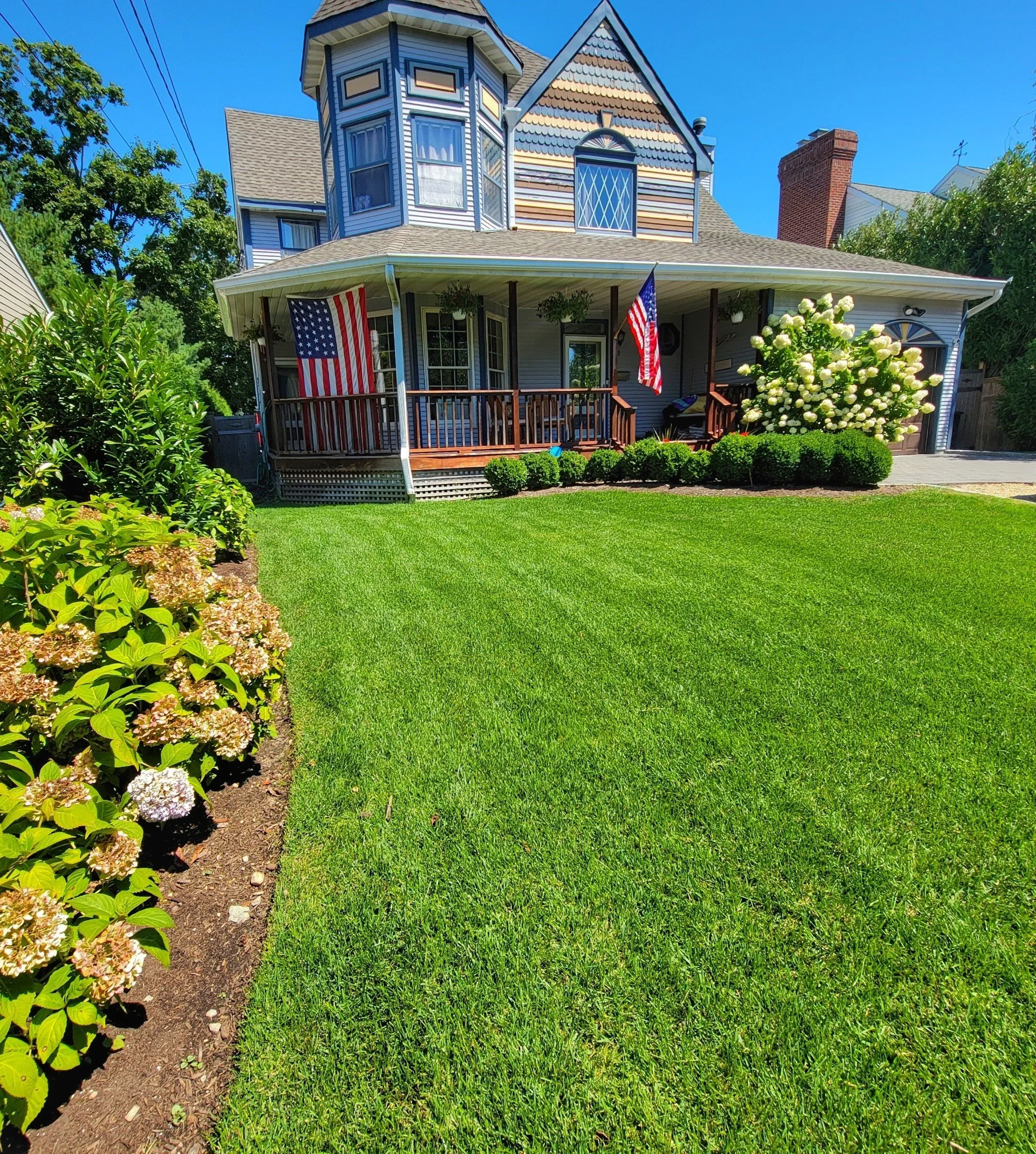 The landscape of this Victorian-era home needed to be updated with modern amenities. Beautiful pavers in the backyard provide durability and longevity for outdoor activities and family dinners on the patio. The poolscape provides a modern tone with large, smooth pavers, while a second walk-out paver patio closer to the home provides a welcoming setting for enjoying a freshly grilled meal with friends and family. Beautiful blooms can be found throughout the property, with specially curated white hydrangeas, rose bushes, annual displays, and more.