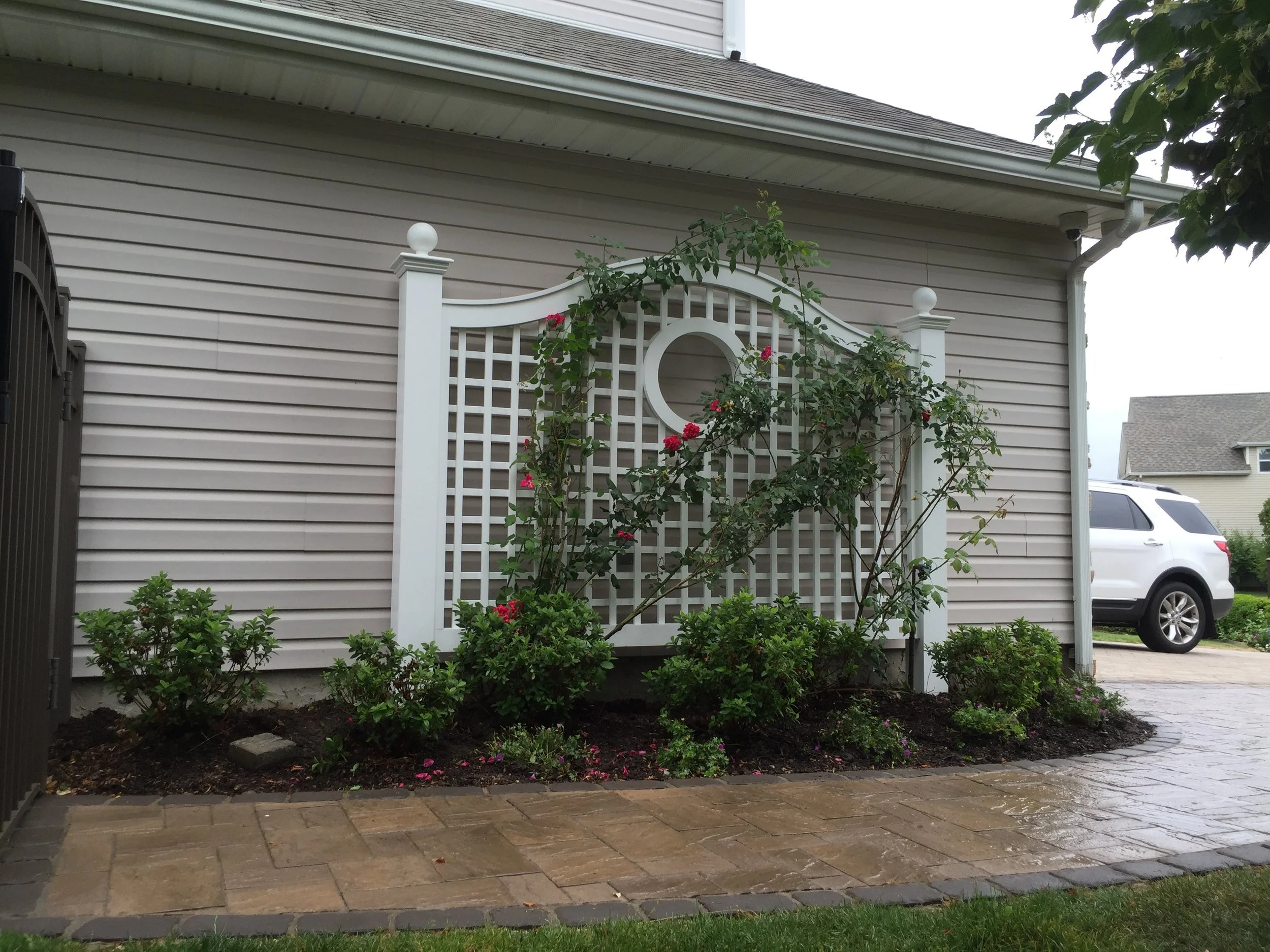 Gary Duff Designs created a functional, multi-purpose backyard, boasting a pool, pergola, outdoor kitchen, and seating area conveniently situated around a cozy fireplace just steps from the home - an outdoor home. Keeping the kids in mind, Gary Duff Designs also created a large grass area perfect for lawn games. In order to respect the sanctity of the separate spaces, while also creating cohesion and consistency, the team used warm, earth-tone pavers throughout to tie it all together. For a refreshing touch, a hidden outdoor shower draped with plants delivers both ambiance and privacy.